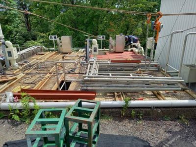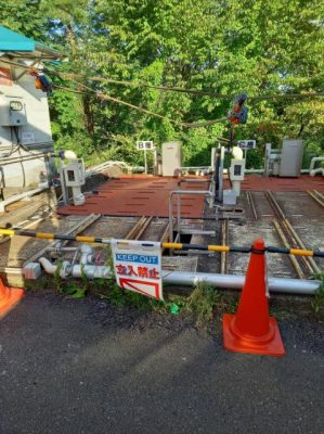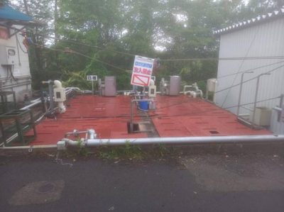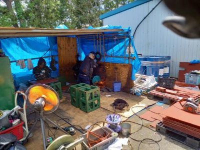現場にて、仮設作業場を設置
