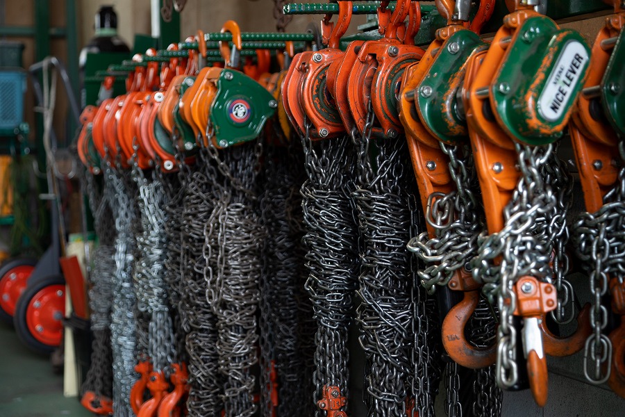 さまざまな道具や機械を使って、運搬・組立・据付を行っています。